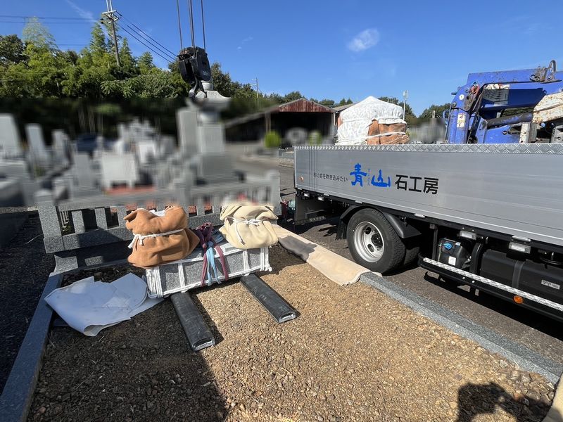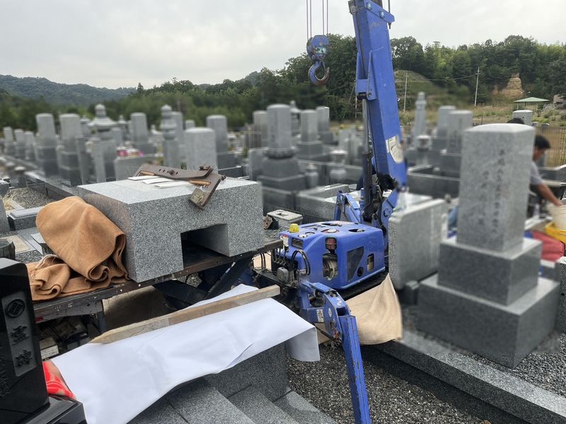 今回は、今治市宮窪町地域墓地に有った墓石を、京都府亀岡市に有る霊園墓地に移転改修工事のお手伝いをさせていただきましたのでご紹介致します。