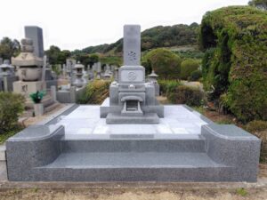 今回は、今治市営大谷墓園墓地13区で、本体に大島特級石・青山ブルーをお選びいただいた10寸剣付き3重台の和型が完成しましたので、ご紹介させていただきます。