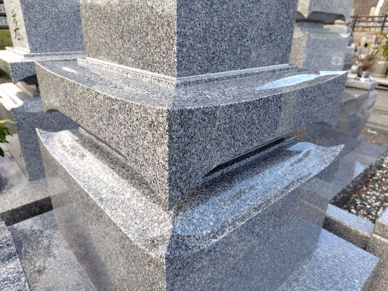 竿石頭部には、香箱(こうばこ)加工がほどこされ上品な印象になっています。