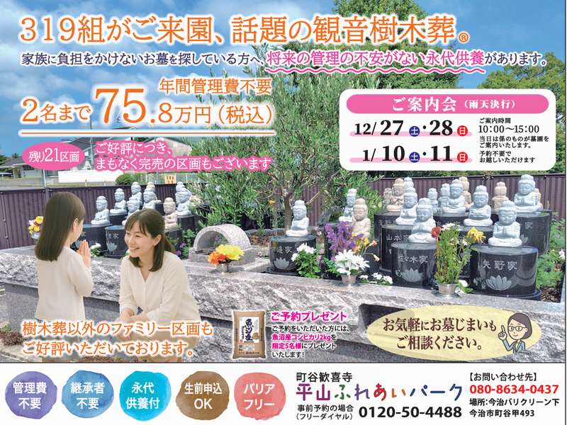 合同供養塔の他にも、樹木葬墓地や永代墓の区画もございますので、ご興味がある方は是非一度ご相談下さい。