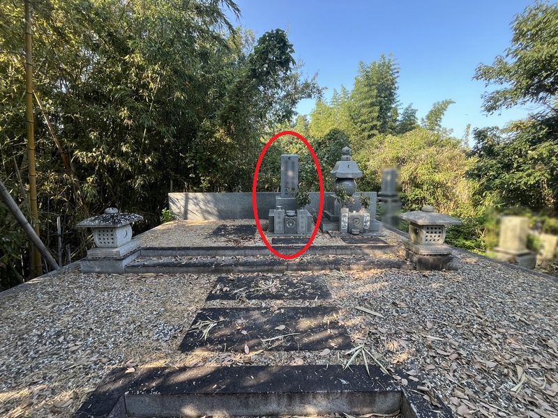 墓所は山の中にあり、周囲には木々や竹が生い茂っていました。