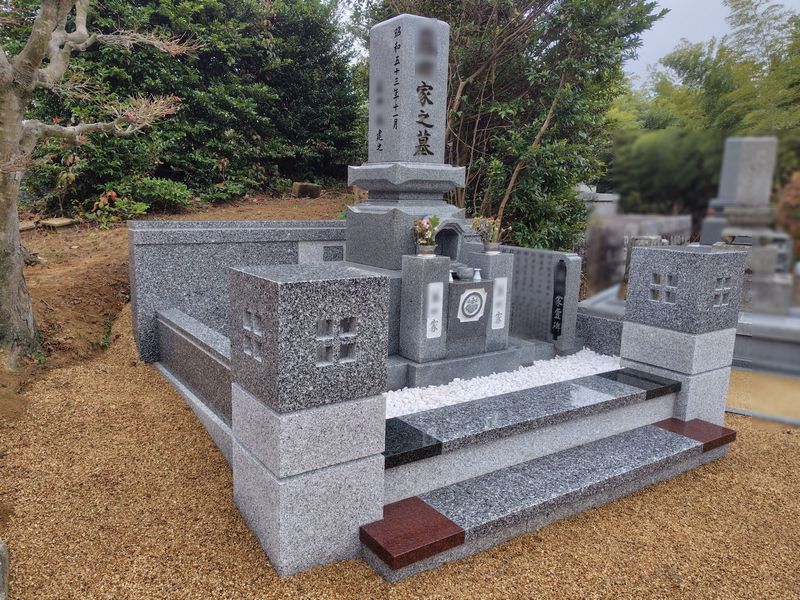 さらに、踏み石には赤や緑の板石を取り入れることで、明るく目を引く墓所にしたいというご希望もお持ちでした。