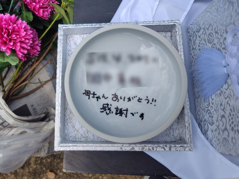 お骨壺フタの内側には、娘さんからお母様への想いが込められたメッセージが記されていました。