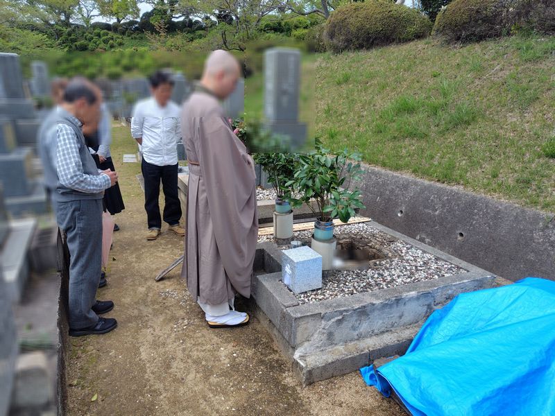 ご納骨後は、墓石を丁寧に元の状態へと戻し、据え付け作業も問題なく完了しました。