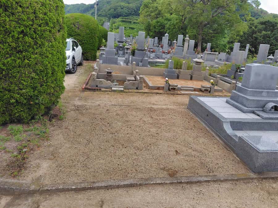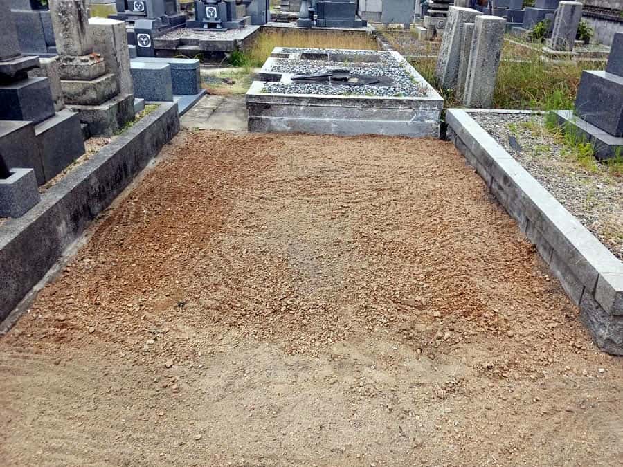 墓石の解体撤去後、防草土を入れて雑草対策を行いました。