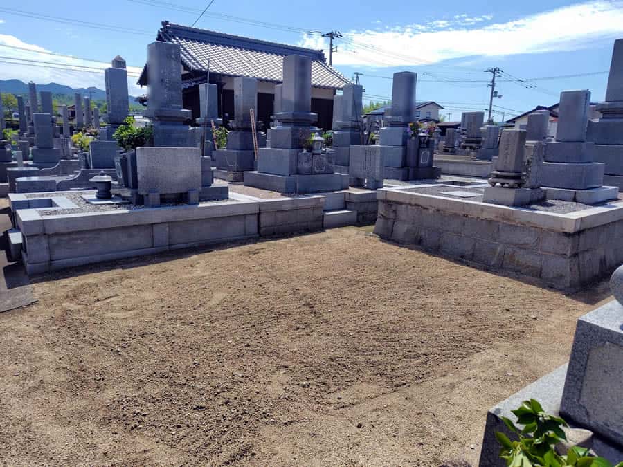 墓石の解体撤去後、敷石を据え防草土を入れて墓地を整備しました。